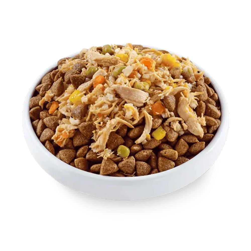 - يمكن تقديم الطبقة العلوية بمفردها أو إضافتها إلى الطعام الجاف المفضل لديهم لزيادة الرطوبة والنكهة.