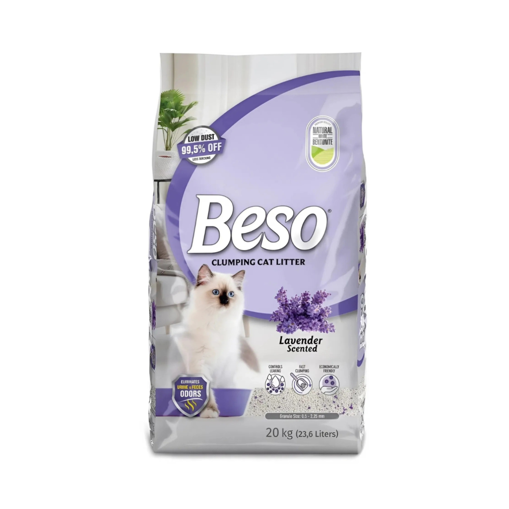 يتميز رمل القطط بيسو باللافندر بأنه الخيار المثالي للحفاظ على نظافة وراحة قطتك ومنزلك. صُنع هذا الرمل من مادة البنتونيت عالية الجودة، وتعمل رائحة اللافندر على منح محيطك رائحة منعشة ومريحة.