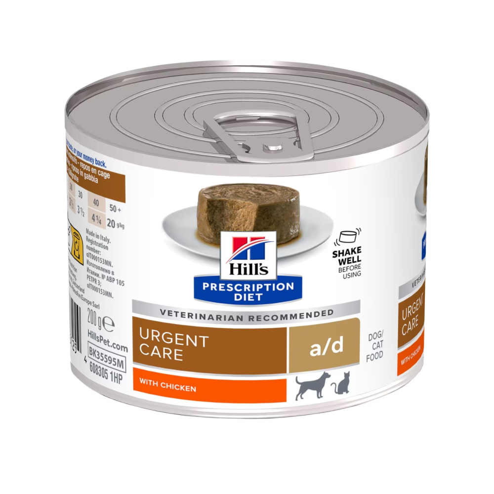 تم تصميم Hill's Prescription Diet a/d للاستخدام المتقطع أو كغذاء مكمل فقط. لا يُنصح باستخدامه على المدى الطويل (أكثر من 6 أشهر).