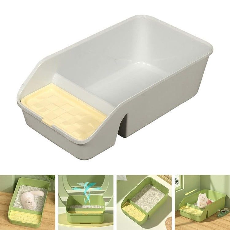 - [مفتوح من الأعلى] توفر حوض فضلات الحيوانات الأليفة شبه المغلقة مساحة واسعة للقطط، وتسمح لك بمراقبة سلوك القطط بسهولة، وتتبع وقت التنظيف وزيادة دوران الهواء.