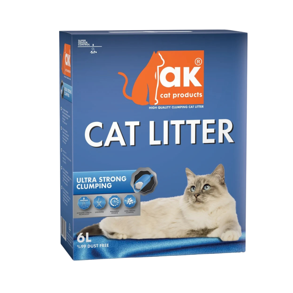 - لصندوق فضلات نظيف وصحي، اختر رمل قطط إيه كيه كات برودكتس عديم الرائحة.