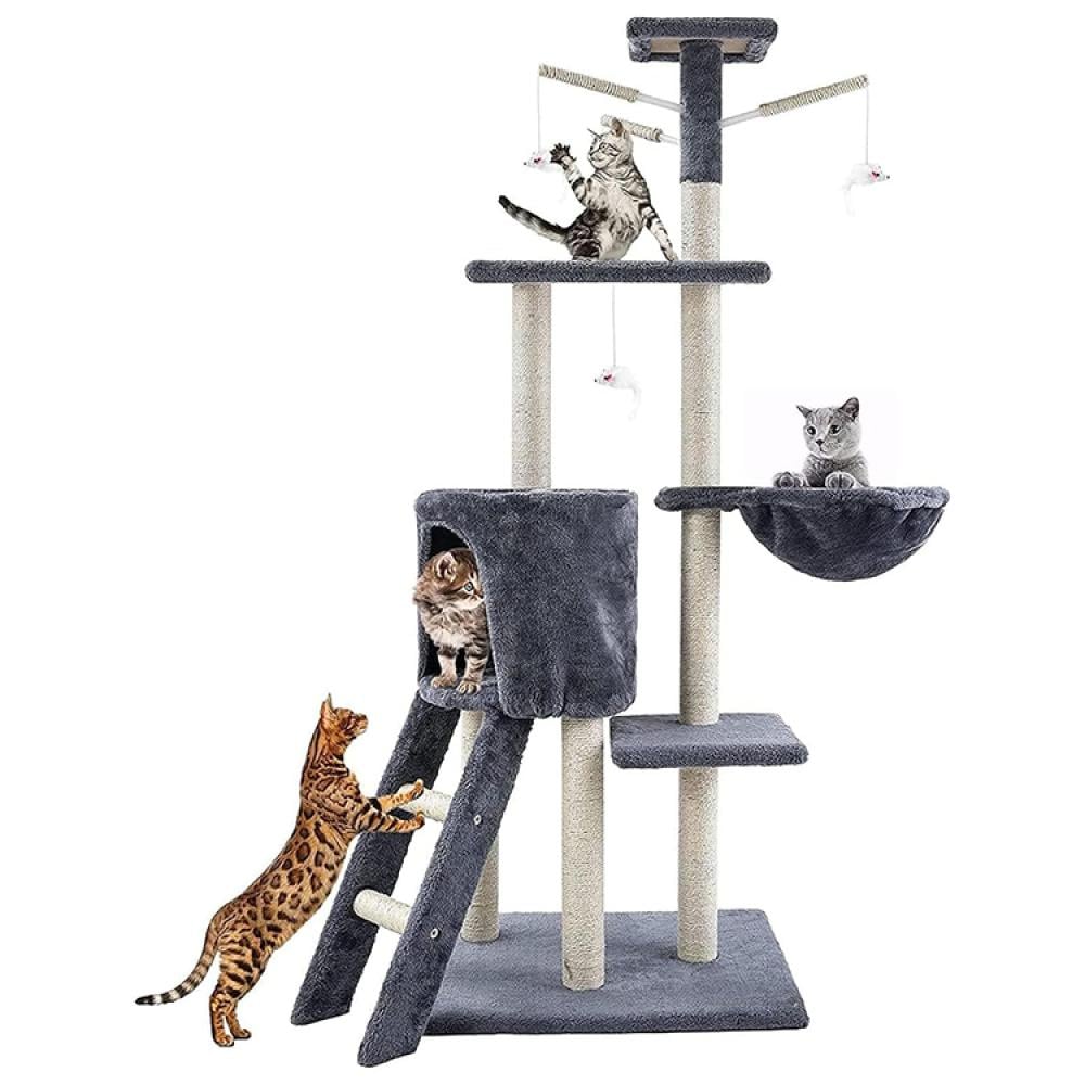 - يتوفر في بيت للقطط الصغيرة أعمدة خدش من حبال السيزال، والذي يتيح لقطتك صقل مخالبها، مما يحد من تلف الأثاث الخاص بك ويساعدها على الحفاظ على صحة مخالبها