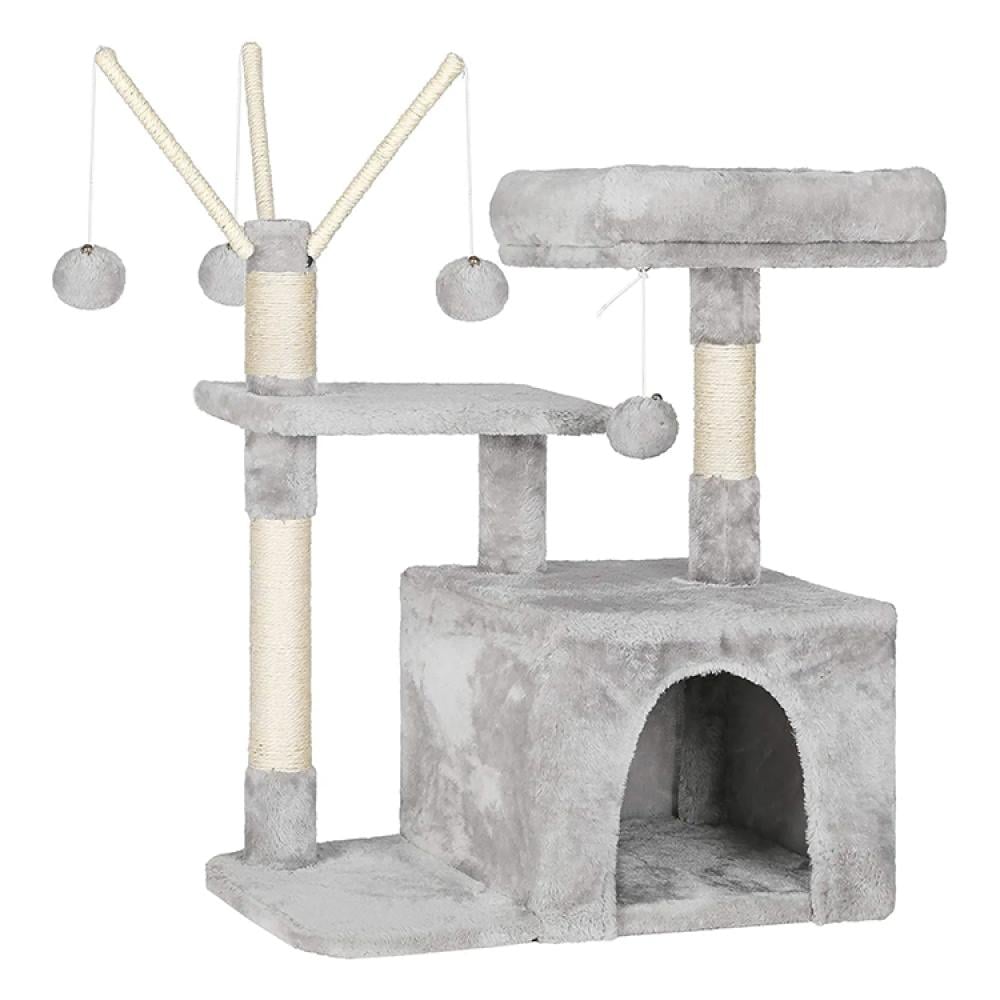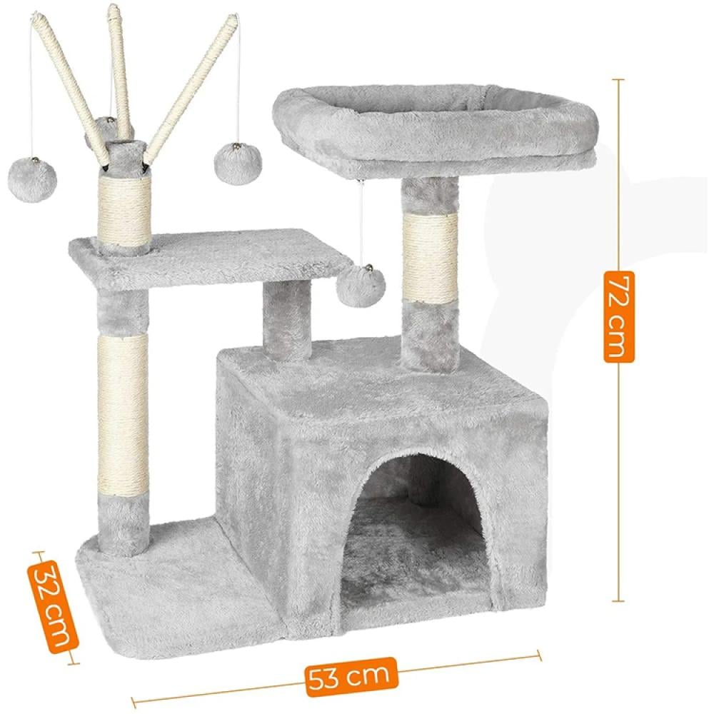 • يتوفر في بيت للقطط الصغيرة أعمدة خدش من حبال السيزال، والذي يتيح لقطتك صقل مخالبها، مما يحد من تلف الأثاث الخاص بك ويساعدها على الحفاظ على صحة مخالبها
