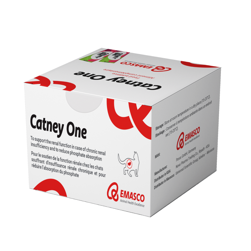 Catney One هو مكمل غذائي مصمم خصيصًا لدعم وظيفة الكلى لدى القطط، وخاصة تلك التي تعاني من الفشل الكلوي المزمن (CKD). دوره الأساسي هو الحد من امتصاص الفوسفات الموجود في طعام القطة.