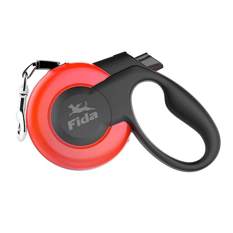 فيدا ام سفن بلس مشد أوتوماتيكي للتنزه للكلاب لون احمر مع اضاءة ليلية (ليد)