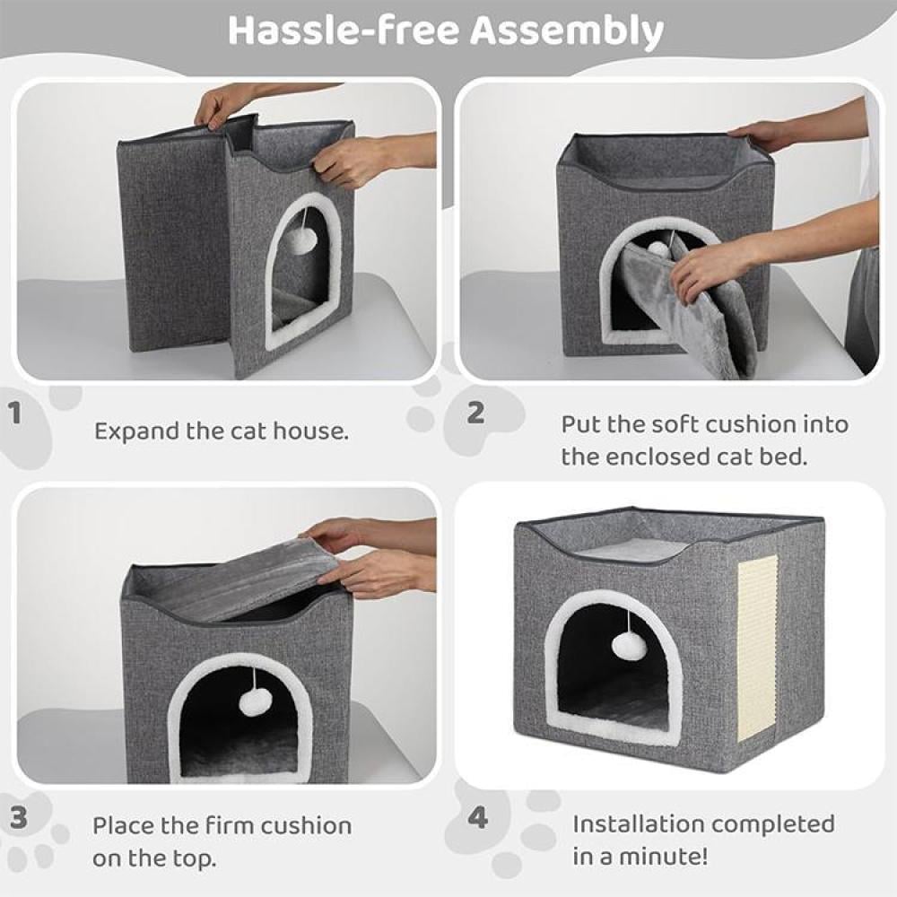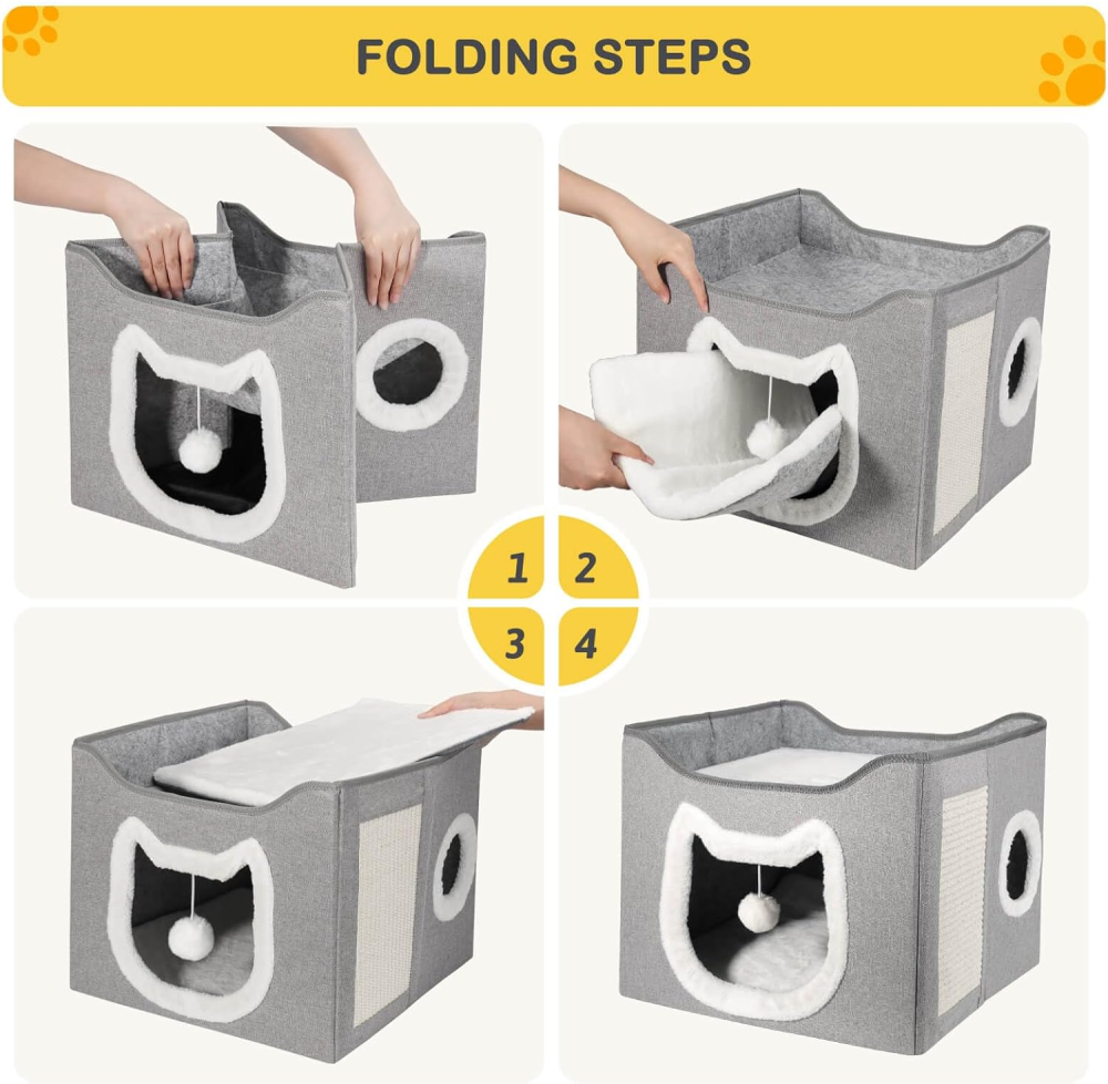- تصميم بطابقين: يوفر مساحة إضافية لقطتك للاستكشاف والاسترخاء. الطابق العلوي مثالي للقيلولة، بينما الطابق السفلي يعتبر مكانًا آمنًا ومريحًا.