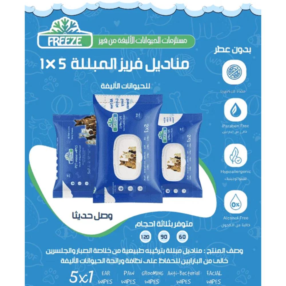 فريز مناديل تنظيف للقطط والكلاب بدون معطر 60 منديل