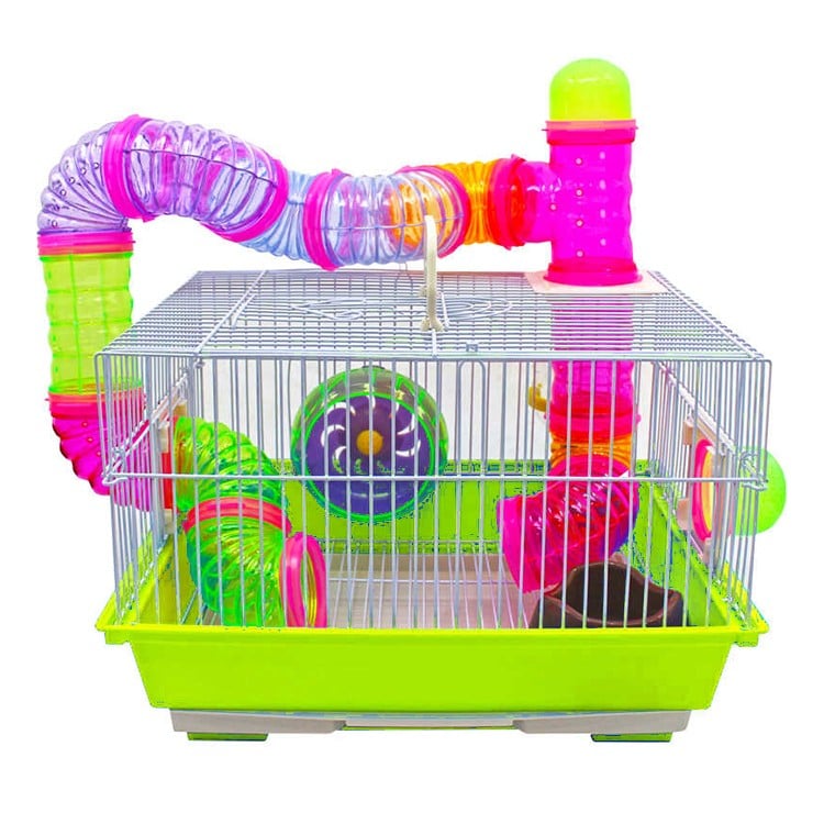 قفص هامستر متوسط مع لعبة العجلة ونفق