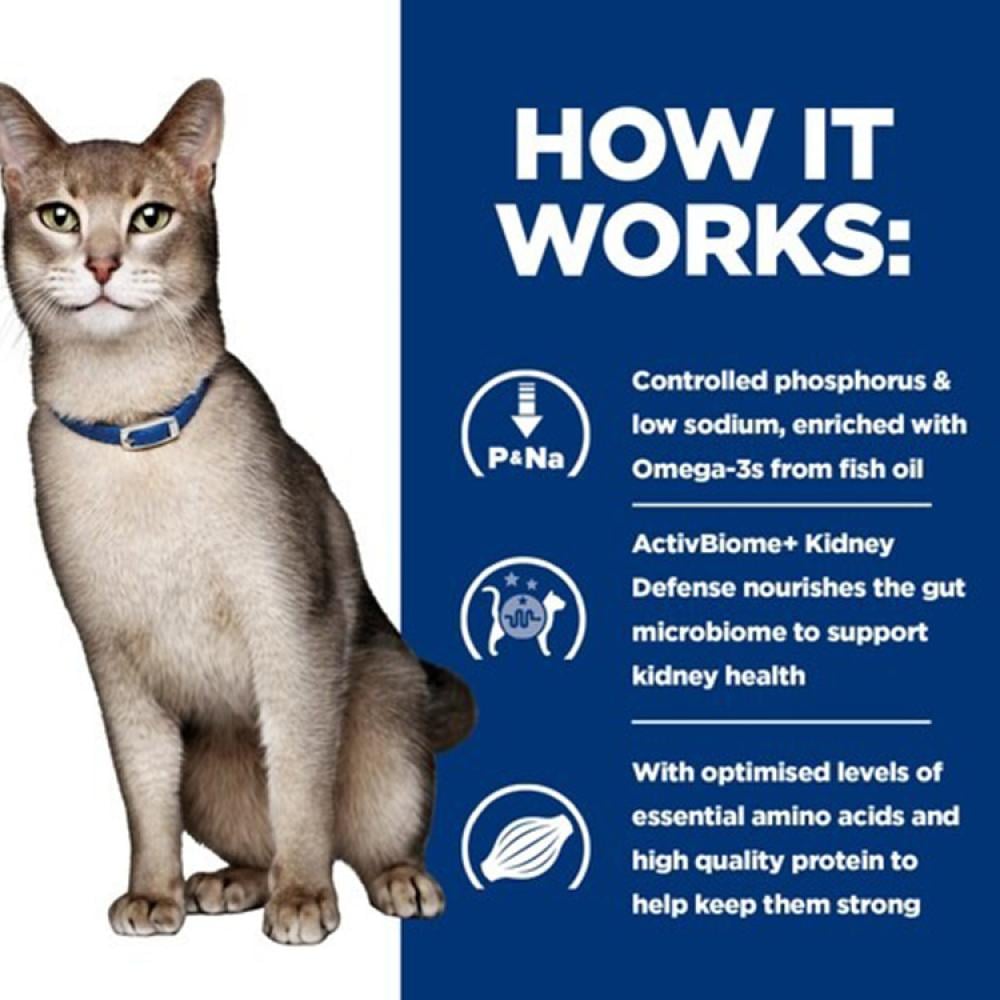 Hill's PRESCRIPTION DIET k/d Cat Food with Tunaهو غذاء للقطط لدعم وظائف الكلى في حالة القصور الكلوي المزمن أو المؤقت في القطط البالغة. يحتوي هذا الطعام على مستوى منخفض من الفوسفور ومستوى محدود من البروتين ولكنه ذو جودة عالية.