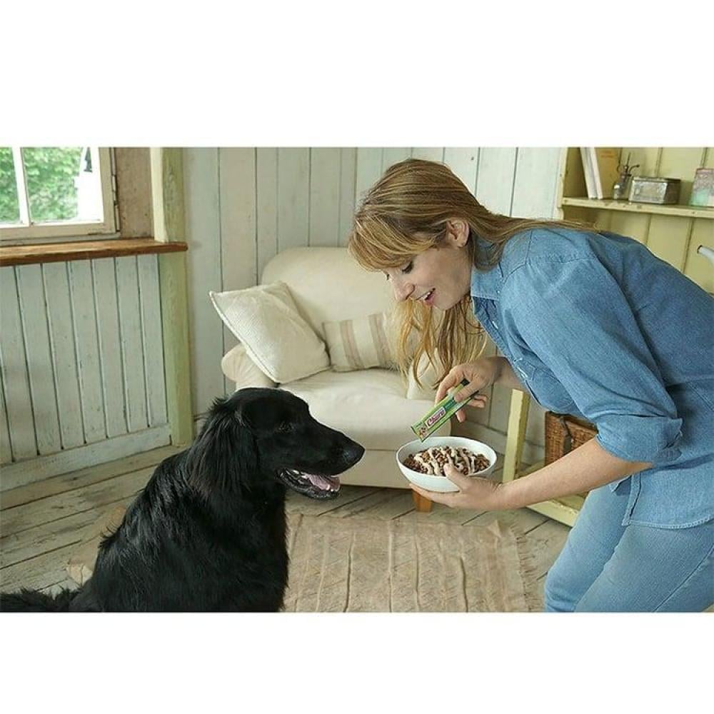 يمكنك إطعام كلبك الأنبوب المحشو بتشورو بسهولة، كما يمكنك سكبها في وعاء أو استخدامها كطبق علوي لذيذ على الطعام الرطب أو الجاف، لإضافة لمسة خاصة وشهية لوجبة كلبك.