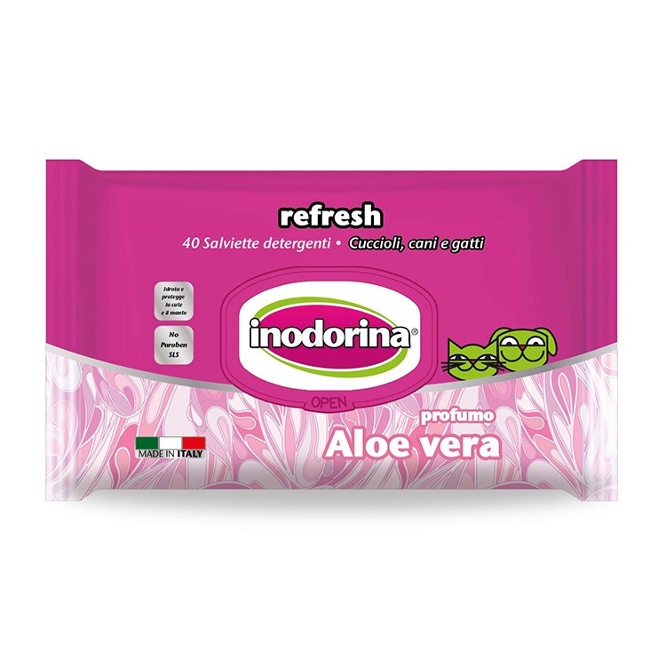 مناديل تنظيف متعددة الأغراض من اينودورينا ، مناديل خالية من الكحول والبارابين و سلفات الصوديوم ، مما يجعلها اّمنه على جسم قطتك وعلى المناطق الحساسة مثل الوجه وباطن الأقدام ، مُصنع بمعايير جودة عالية ووفق المعايير العالمية ، تسوق كل مستلزمات وأغذية قططك
