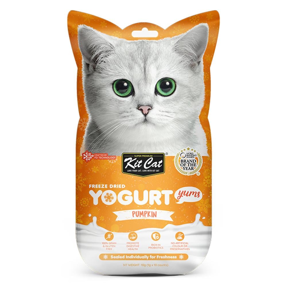 يوقورت مكافأة قطط زبادي مجفف بطعم اليقطين مكافئات للقطط 10 × 1 جرام