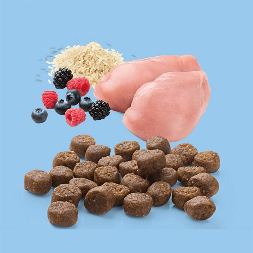 - مصنوع من مواد طبيعية من الدواجن الطازجة والأرز وفواكه الغابات عالية الطاقة التي تساعد في تحسين الهضم وامتصاص العناصر الغذائية بشكل أفضل