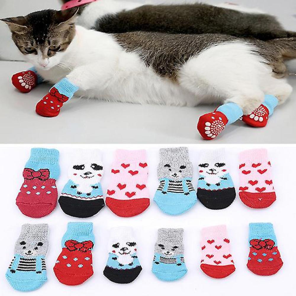 جوارب حيوانات أليفة مانعة للتلوث و مانعة للإنزلاق ، جوارب صغيرة لحماية حيوانك الاليف ذو 4 قطع في المجموعة