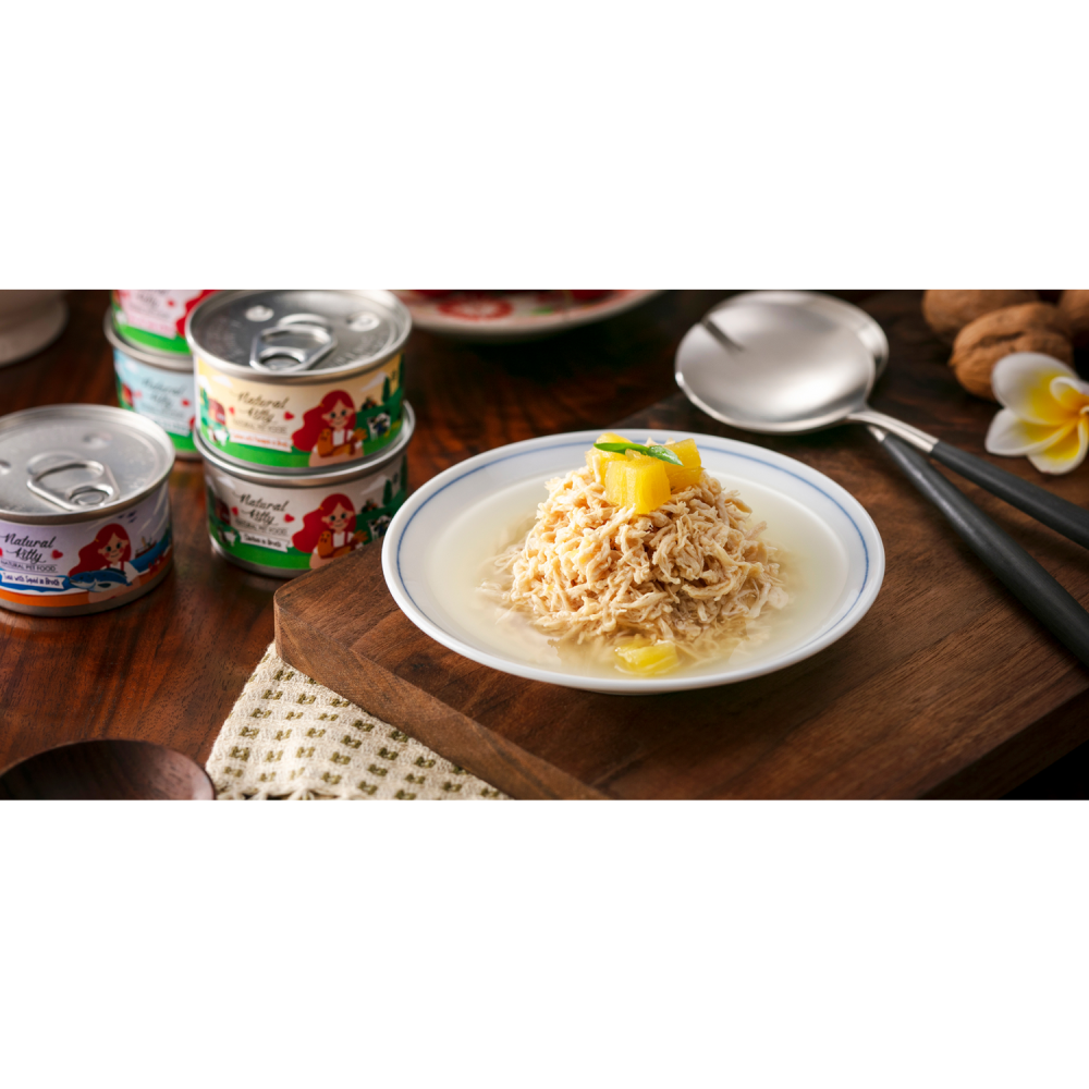 - طبيعي ونقي: مكونات بسيطة 100% مثل الدجاج والجزر والمرق.