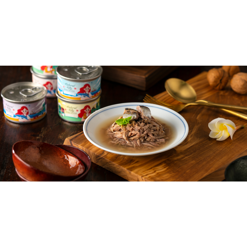 - طبيعي ونقي: مكونات بسيطة 100% من التونة والسردين والمرق.