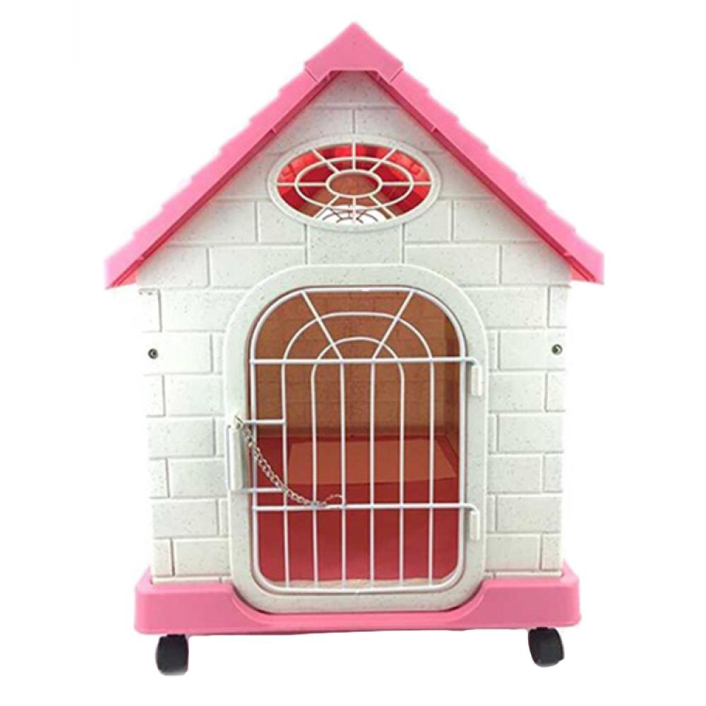 كوخ قطط وكلاب بلاستك XL سهل التركيب لون وردي