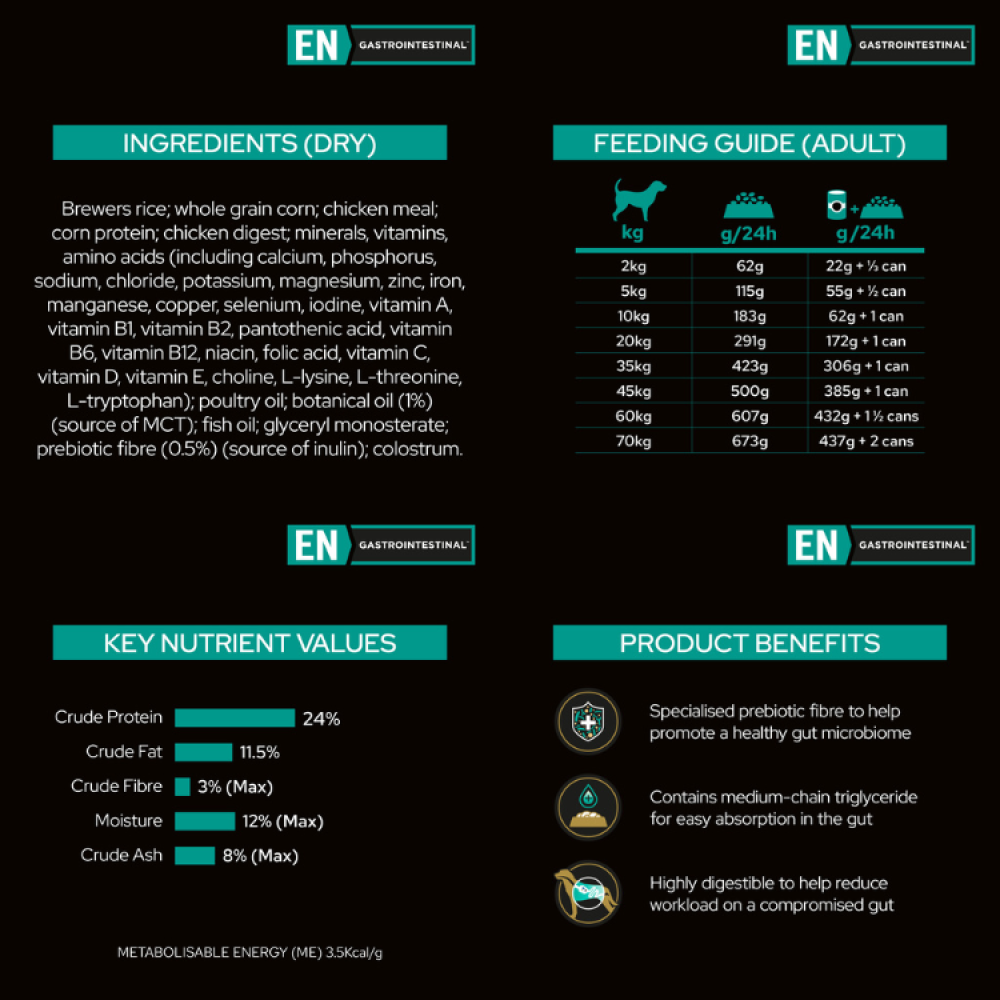 تعتمد تركيبة Pro Plan Veterinary Diet Canine EN Gastrointestinal على مكونات عالية الجودة ومختارة بعناية لضمان أقصى قدر من الهضم وتقليل التهيج المعوي. قد تشمل: