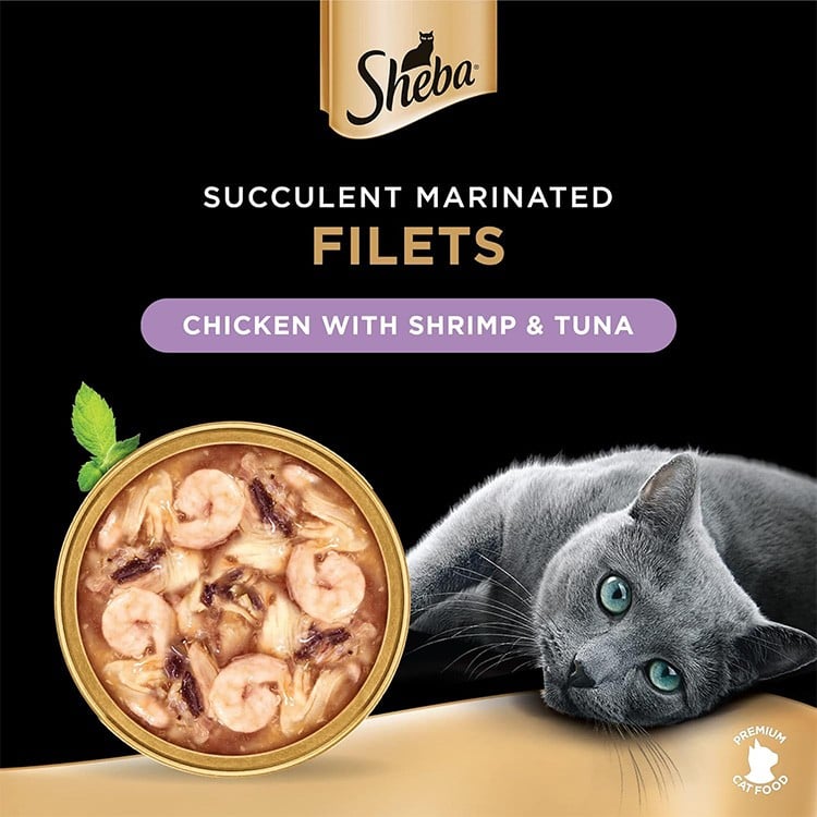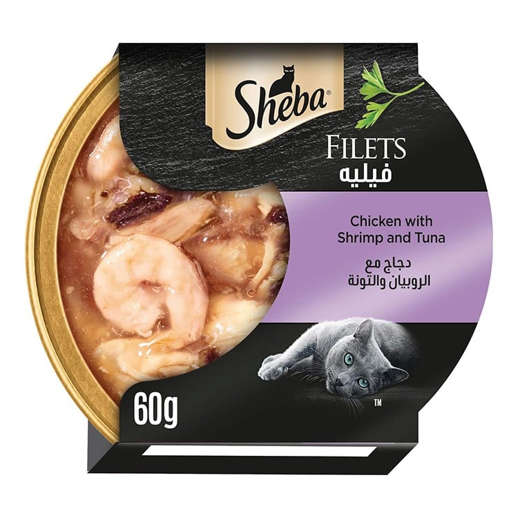 طعام رطب للقطط البالغة بالدجاج مع الروبيان والتونة