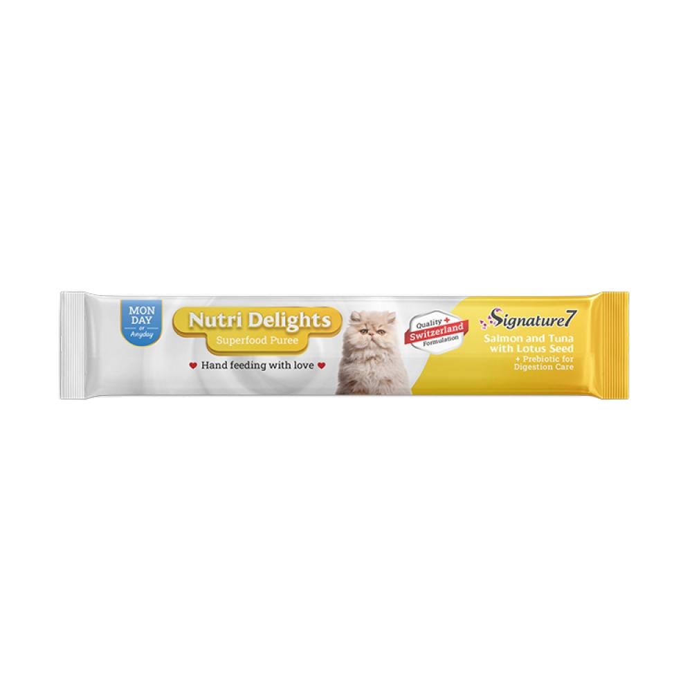 سيقنتشر7 مكافآت القطط المميزة بسمك السالمون والتونا مع بذور اللوتس التي تحتوي على البريبايوتك للعناية بالهضم