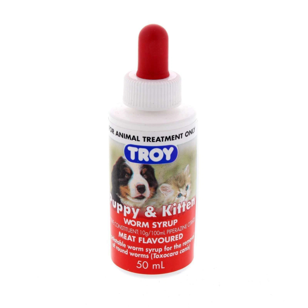 شراب الديدان بنكهة اللحوم للجراء والقطط من تروي (Troy Puppy & Kitten Worm Syrup).