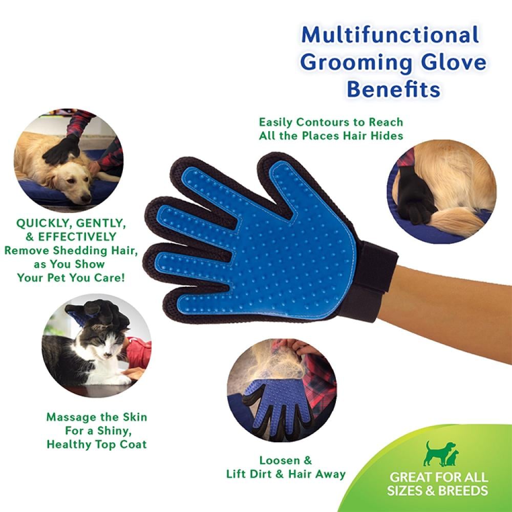 قفاز ازالة الشعر الميت للقطط والكلاب ، قفاز مميز للعناية بالأليف حيث يتم وضع القفاز في يدك اليمين ثم قم بتمشيط الفرو في نفس إتجاه نمو الشعر . يفيد في فك تشابك الشعر وإزالة الشعر الميت وتنعيم شعر قططك.
