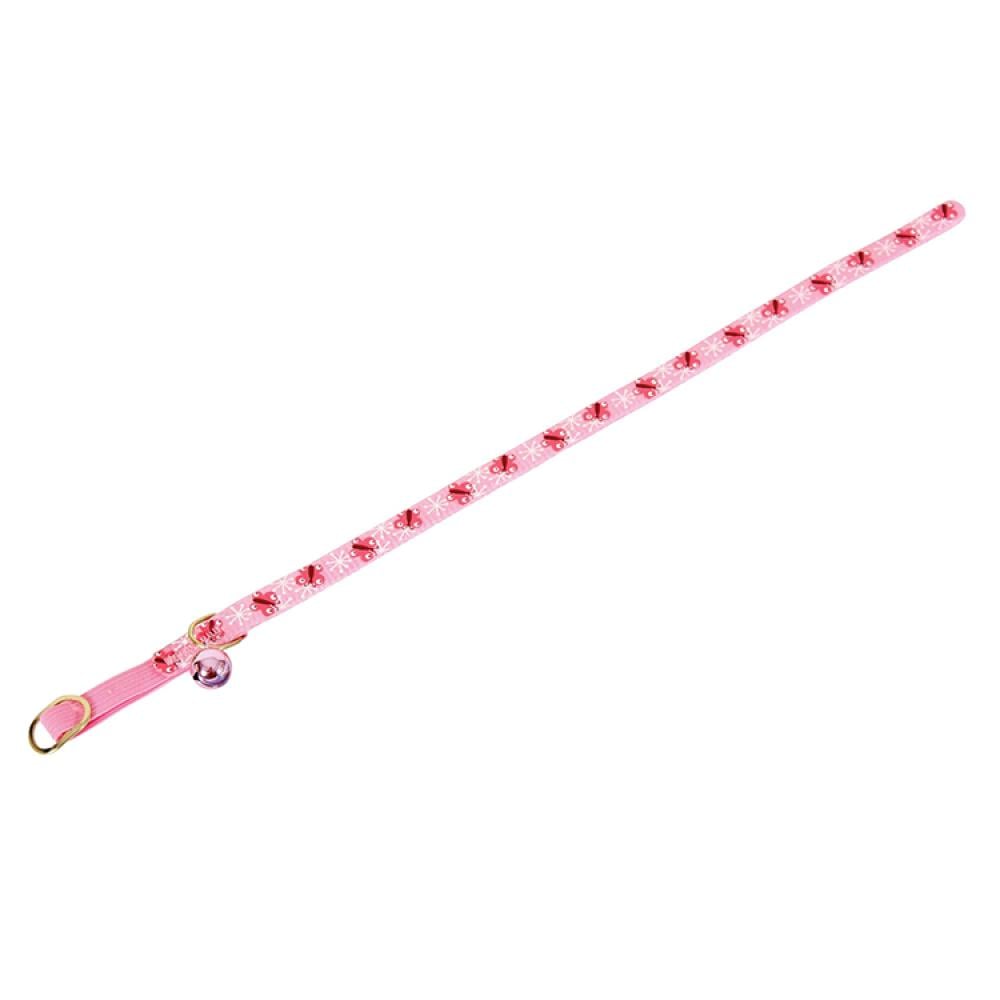 زولكس طوق نايلون للقطط بطابع فراشات مع جرس وردي