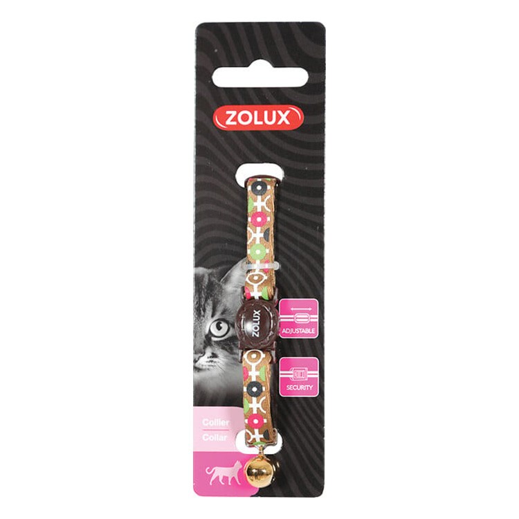 طوق عنق للقطط باللون البني مصنوع من النايلون مع نقشة مميزة، من ماركة زولكس الشهيرة، يمتاز بمظهر رائع ليزين قططك ويزيدها جمالا ، مُصنع من مواد آمنة على صحة القطط المنزلية والحيوانات الأليفة الأخرى، ويمكنك استخدامه بكل أمان وسهولة.