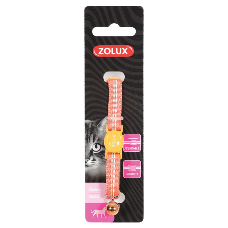 طوق عنق للقطط خطين ملون برتقالي ومصنوع من النايلون ، من ماركة زولكس الشهيرة، يمتاز بمظهر رائع ليزين قططك ويزيدها جمالا ، طوق قطط مُصنع من مواد آمنة على صحة القطط المنزلية والحيوانات الأليفة الأخرى.