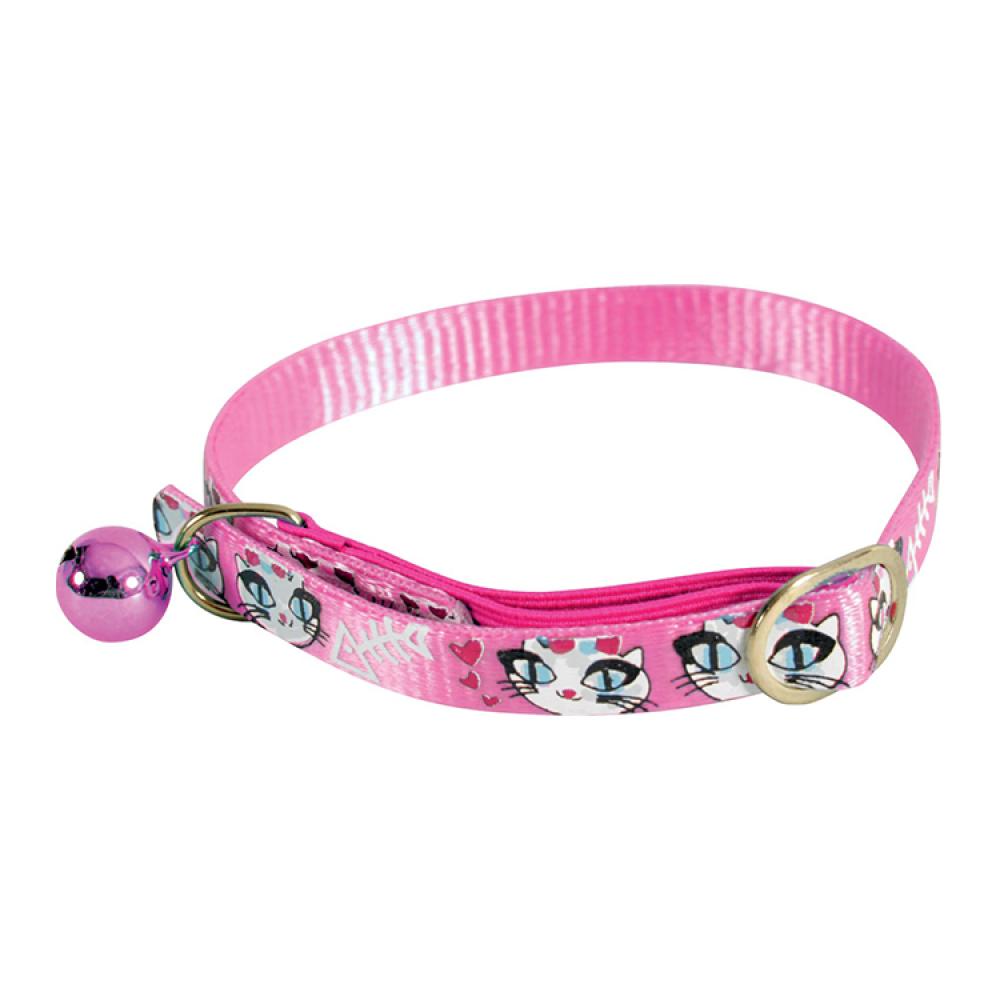 طوق عنق للقطط بلون وردي مع نقوش قطط رائعة، مصنوع من النايلون مع جرس، من ماركة زولكس الشهيرة، يمتاز بمظهر رائع ليزين قططك ويزيدها جمالا ، طوق قطط مُصنع من مواد آمنة على صحة القطط المنزلية والحيوانات الأليفة الأخرى، ويمكنك استخدامه بكل أمان وسهولة.