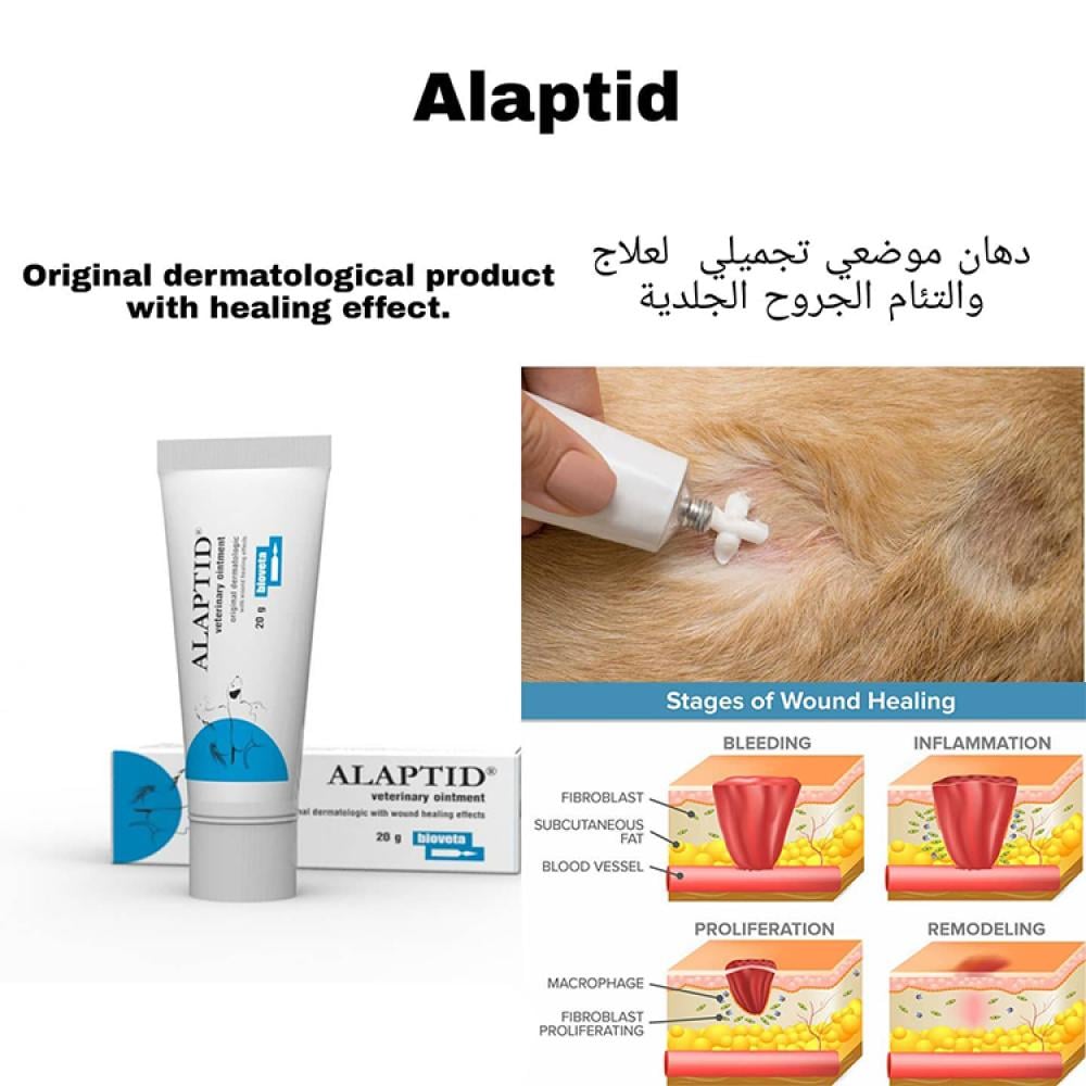 A veterinary ointment intended for the treatment of skin and mucous membrane wounds in all warm-blooded and non-food animals. Alaptide is a synthetic dipeptide. Which accelerates wound healing by stimulating tissue granulation and regeneration. You can use it to treat all minor injuries of the skin and mucous membranes, burns, cuts, frostbite, bruises and ulcers, as well as cracked or salt-filled paws.