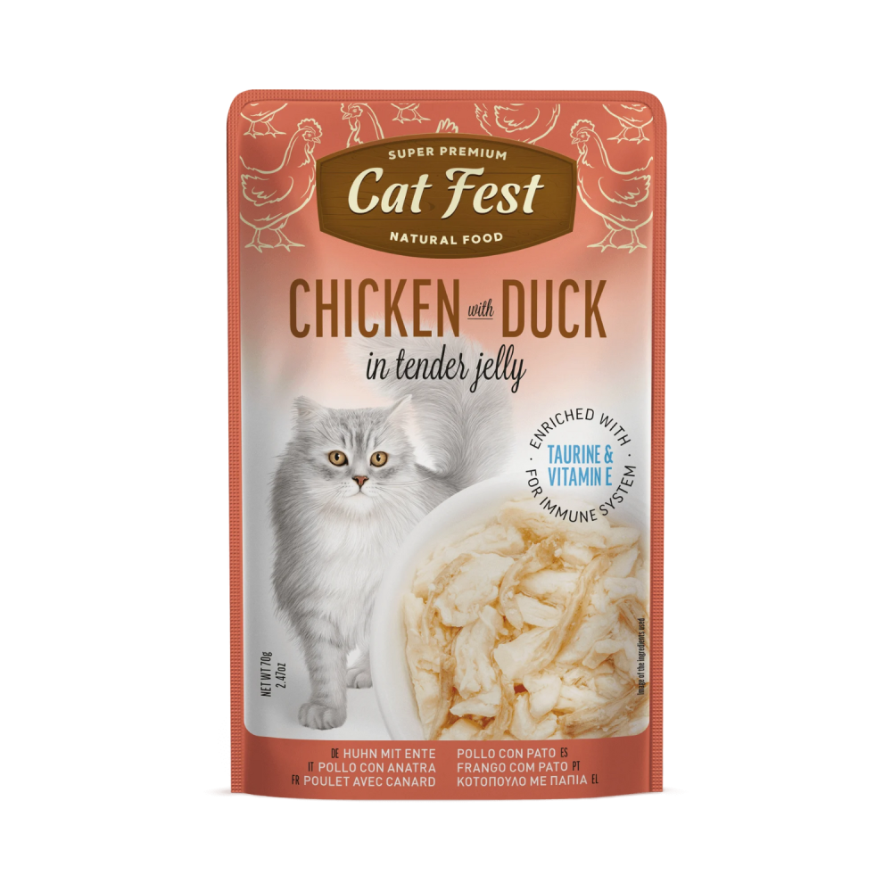 كات فيست اظرف الدجاج مع البط بالجيلي للقطط 70 غ