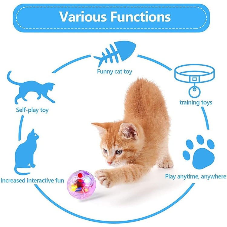 An interactive toy with a light that excites your cat when moved, the light activates and flashes. Exercise is essential for your cat's health, balls are a great gift to encourage him to play and run, avoid obesity and help his heart be healthy. Play is part of all cats' health.