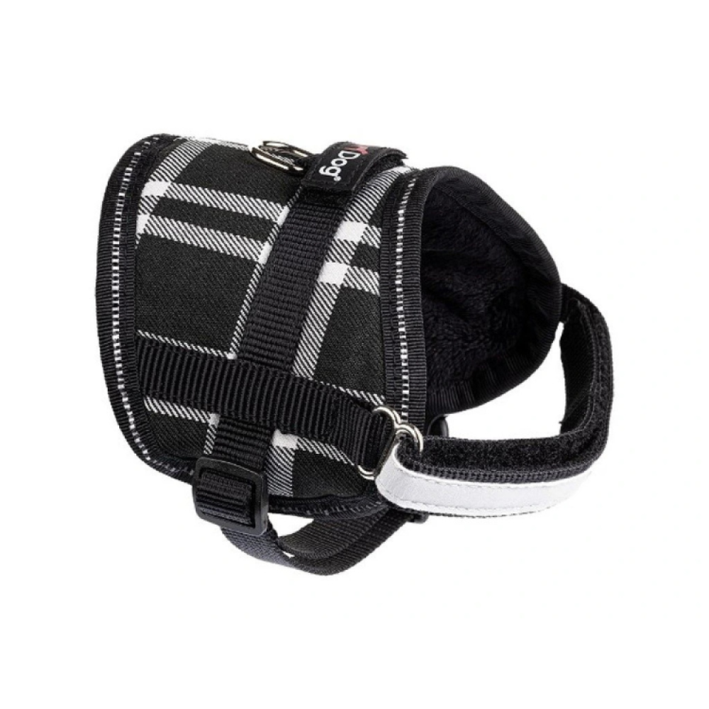 This vest features a modern design, specifically designed for small pets. Its soft fleece lining provides maximum comfort during cold weather. Reflective details ensure clear visibility even in low-light conditions. The vest features a quick-release buckle for quick and easy dressing. The design is ultra-comfortable, and the vest's exterior features reflective stitching for enhanced safety.