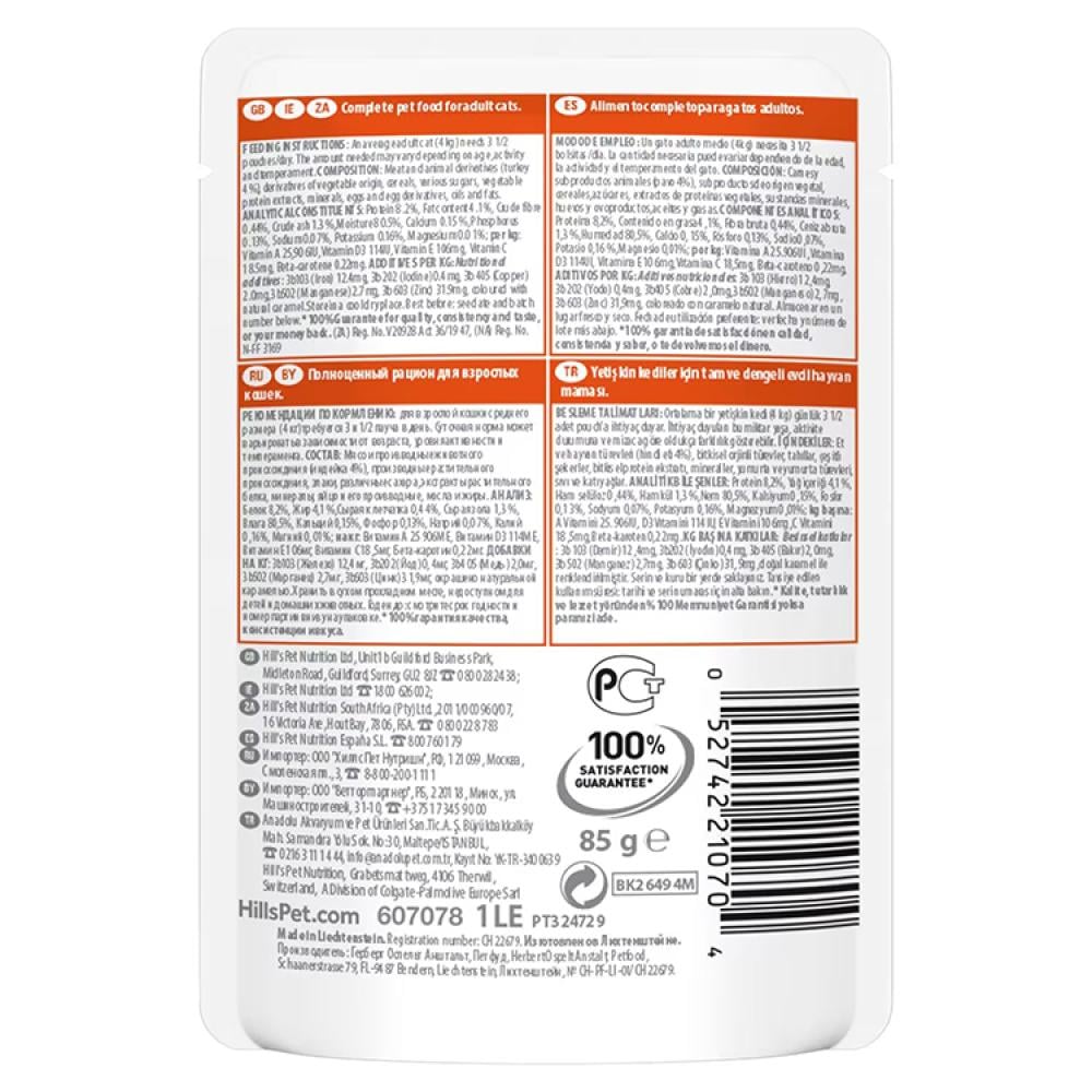 Key BenefitsYour cat will love the taste of Hill's Science Plan Adult Cat Food with Tender Turkey Chunks in Gravy. It offers the perfect balance of taste and nutrition, specifically formulated to meet the energy needs of cats during the prime of their life.