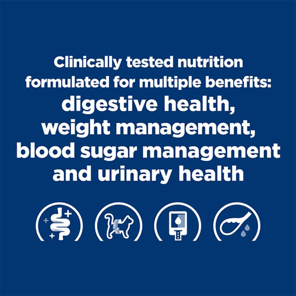 Hill's Prescription Diet w/d Multi-Benefit is a complete, balanced diet that provides all the nutrients your cat needs. Consult your veterinarian for more information on how our prescription diet can help your cat continue to enjoy a happy, active life.
