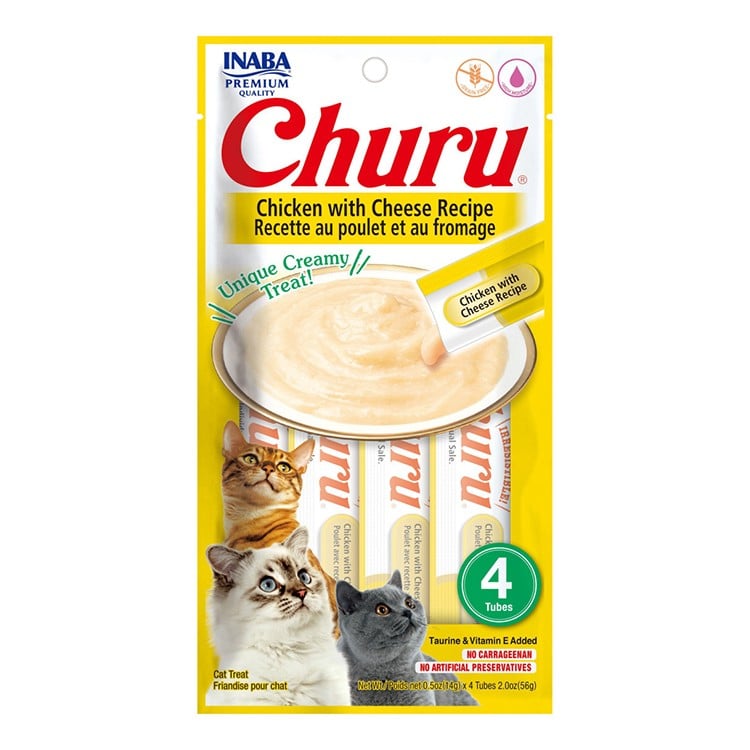 Inaba Wet Cat Treats, Chicken & Cheese Flavored Puree Inaba's creamy puree cat treats are made with wholesome ingredients like farm-raised chicken and natural cheese , crafted by pet nutrition experts with an advanced formula rich in healthy nutrients to suit your indoor cats
