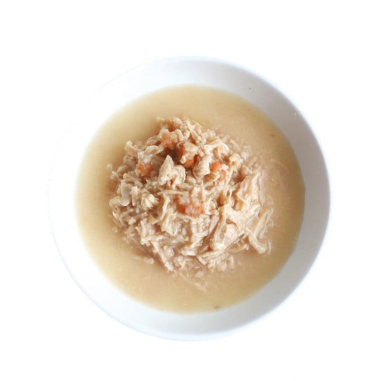 Fresh boneless chicken, shrimp, thickening agent, goat milk powder, vitamin E, taurine, fructooligosaccharides, water