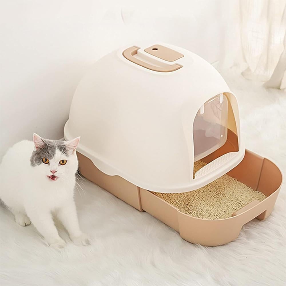 - A practical sandbox, with a practical pull-out drawer that makes disposing of cat litter easier, ensuring a clean and tidy toilet every day.