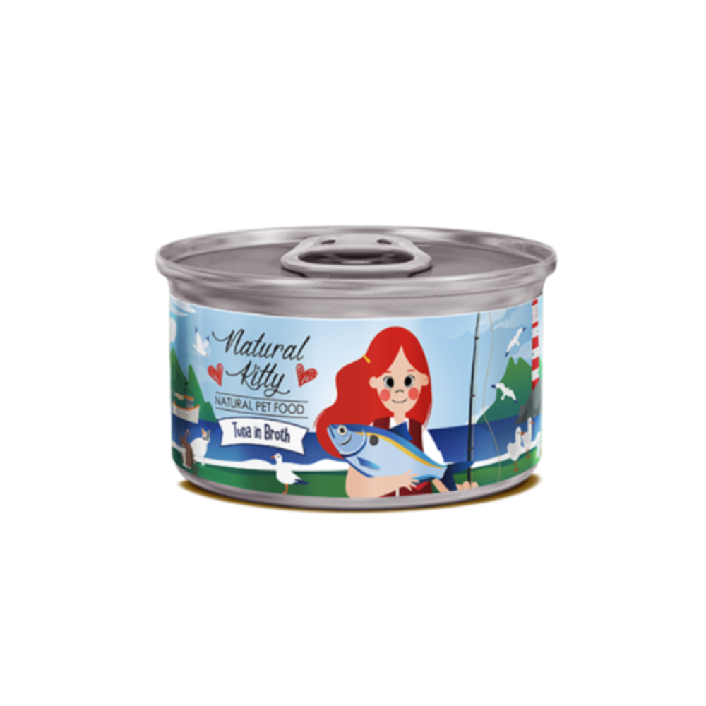 Natural Kitty: Tuna in Broth - A Pure and Natural Seafood Meal for Your Cat Feed your cat a delicious and healthy seafood meal with Natural Kitty Tuna in Broth wet food. This recipe is designed to satisfy your cat's refined taste, with simple and 100% natural ingredients, just like a carefully prepared homemade meal.