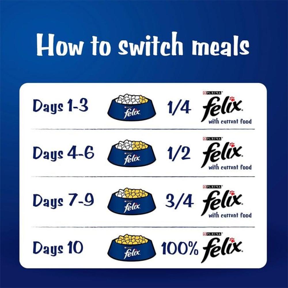 - Purina Felix meets 100% of your cat's needs plus an irresistible taste.