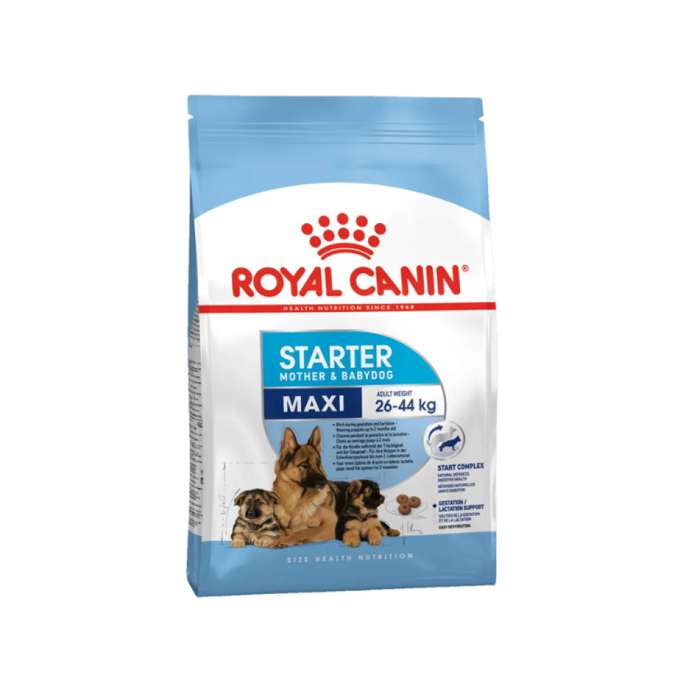 Royal Canin® Maxi Starter Mother & Babydog is a complete and balanced dry food specially designed for large breed dogs during pregnancy and lactation, as well as for large breed puppies expected to weigh between 26 and 44 kg at adulthood. This food provides optimal nutritional support for the mother to maintain her health and for the puppies to give them the best possible start in life.