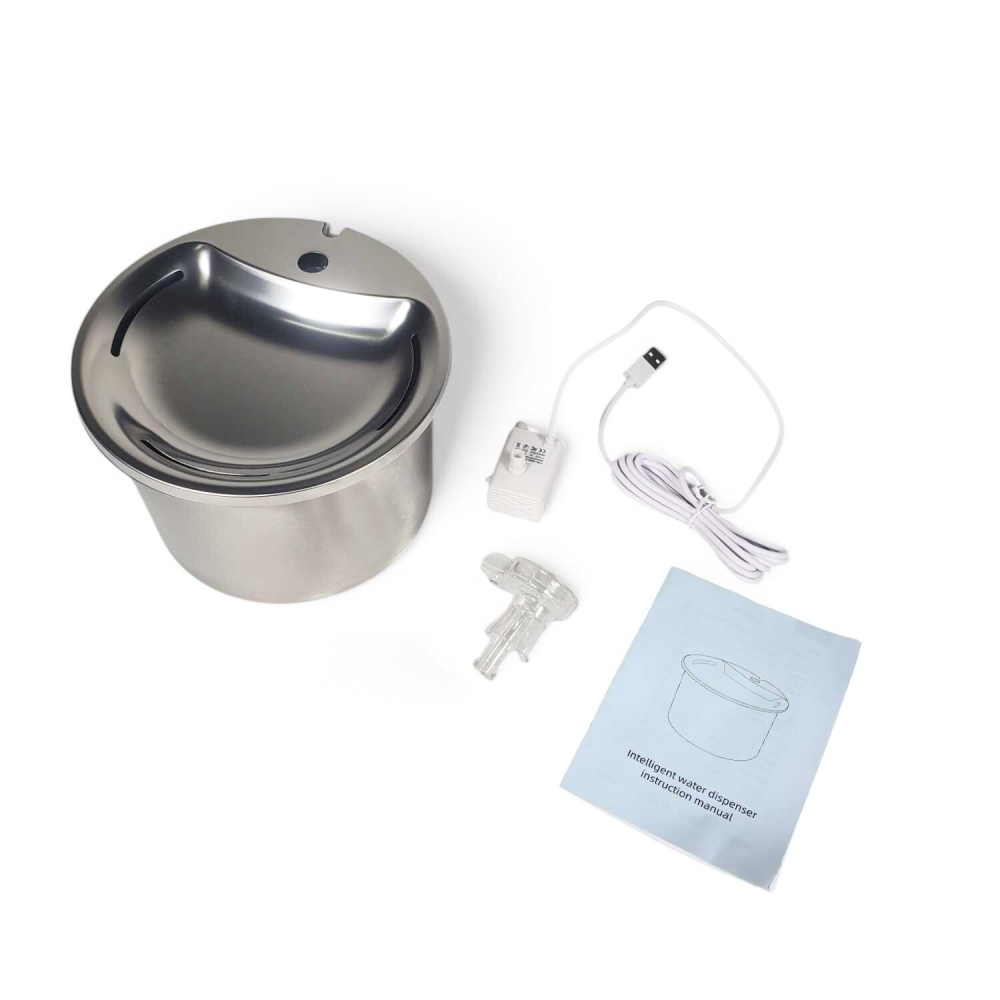نافورة مياه للقطط من الفولاذ المقاوم للصدأ - تصميم هادئ وسعة كبيرة