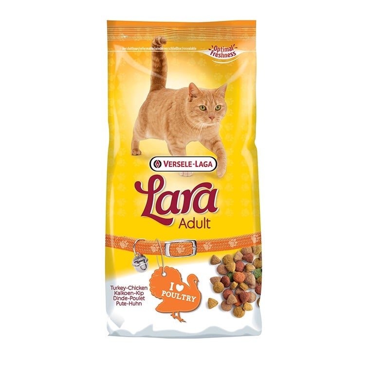 - With Lara Adult Crunchy Pieces, your mischievous cat will clearly enjoy the flavour of chicken and turkey.