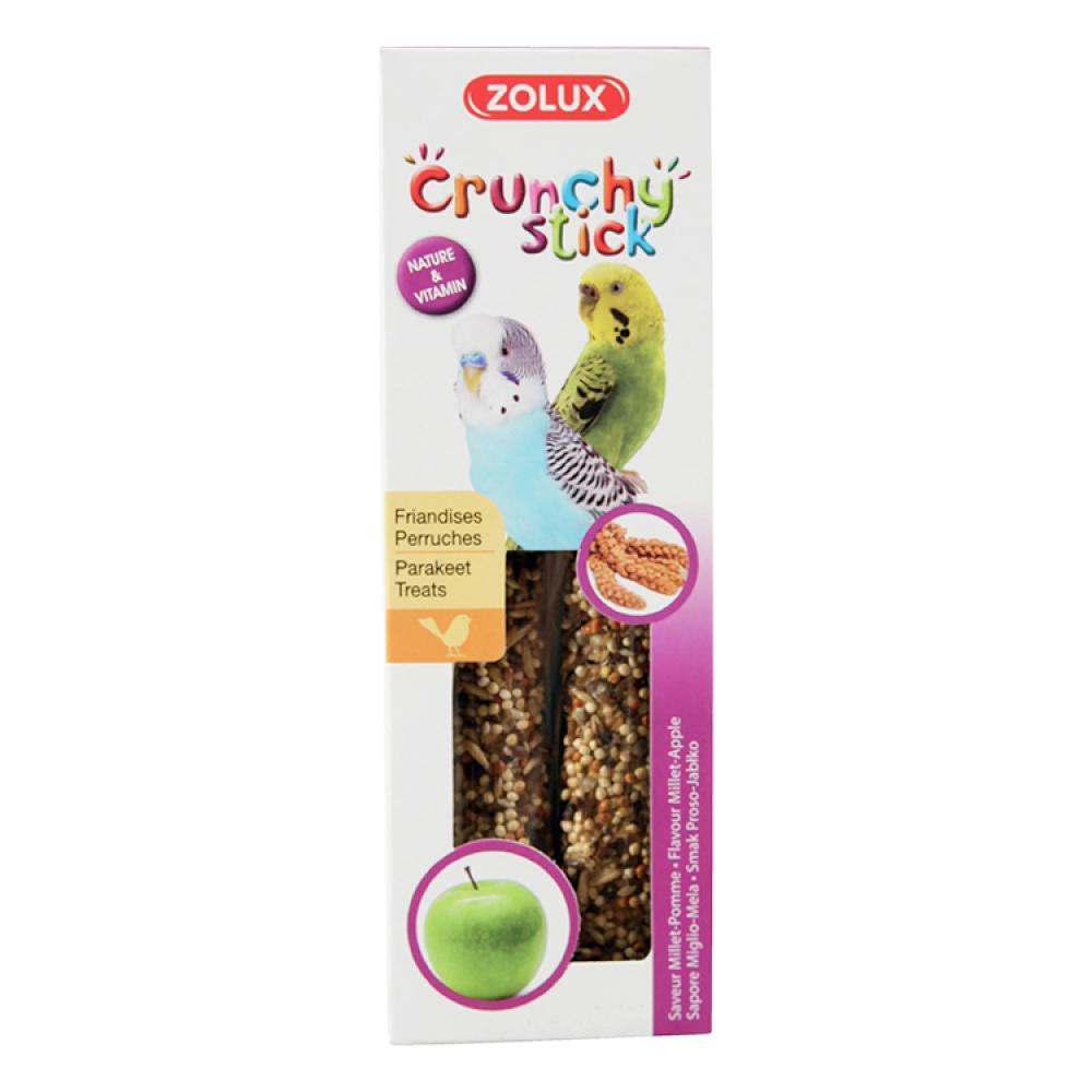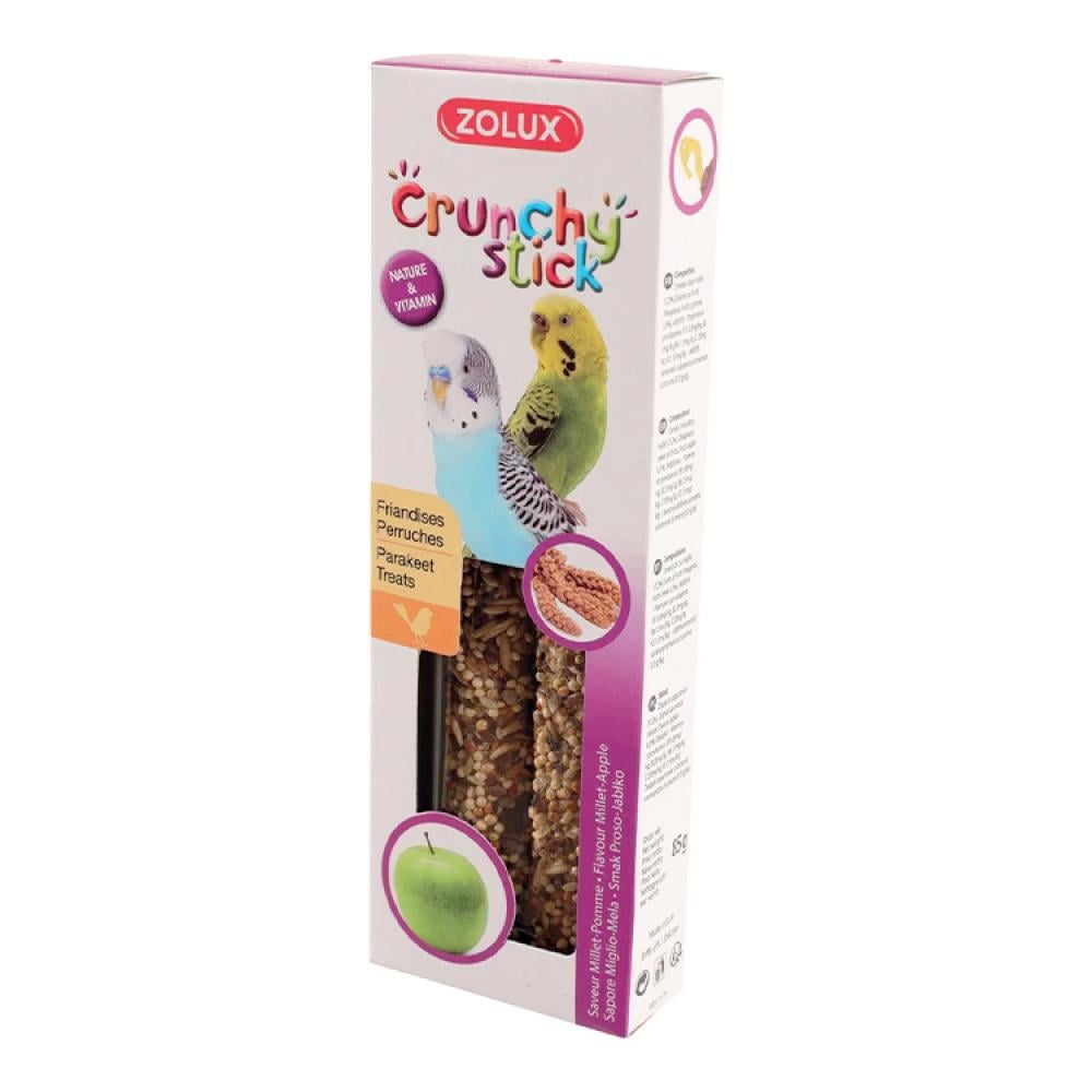 Zolux Budgie Crunchy Sticks 85g is an ideal snack for parakeets and budgies, made with a rich blend of grains, fruits and nuts. These sticks provide your little parrots with a delicious flavour experience with natural ingredients that promote health and activity. These sticks are a great option for a snack or treat between meals.
